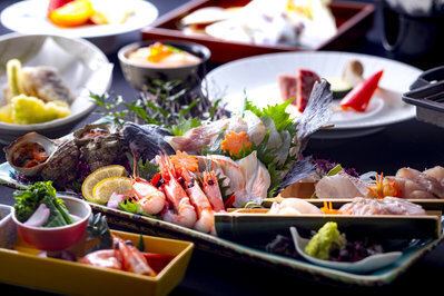 旬の地魚5種盛りをはじめ、紅ガニちらし寿司や但馬牛サーロインステーキ